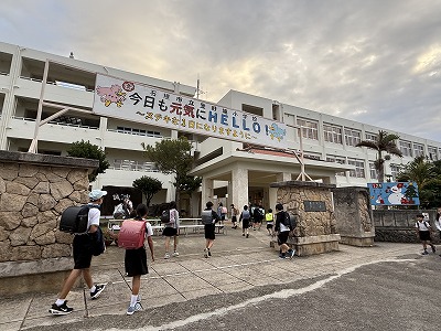 教務主任の金城先生の進行のもと、先ずはみんなで校歌を声高らかに歌いました♪