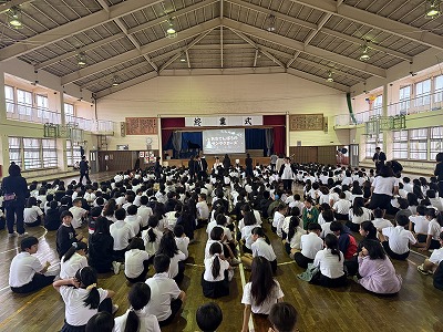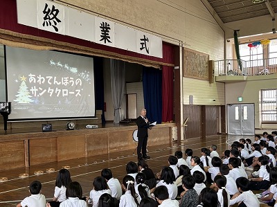 本日、2学期の終業式を無事に迎えることができました。 この長い2学期を充実したものとして終えられたのは、何よりも子どもたちのひたむきな努力と頑張りがあったからです。 日々の成長を間近で見られたことを、心から嬉しく思います。 また、職員の皆様におかれましては、献身的な姿勢で子どもたちに寄り添い、力を尽くしてくれました。そして、保護者の皆様、地域の皆様には、日頃からの温かいご理解と多大なご支援をいただき、心より感謝申し上げます。 皆様の深い愛情とご協力のおかげで、安全かつ実り多い教育活動を行うことができました。  本年も大変お世話になりました。 どうか、ご家族皆様で穏やかな年末年始をお過ごしください。来年も引き続き、本校教育へのご支援、ご協力を賜りますようよろしくお願い申し上げます。