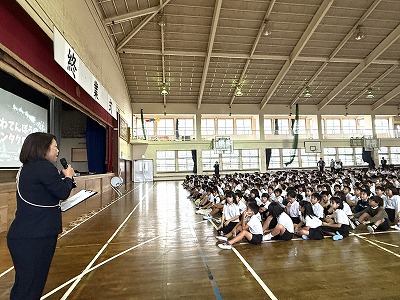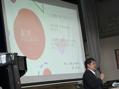 終業式が終わった後、生徒指導の至先生から「冬休みの過ごし方」についてお話がありました。詳しくは「冬休みのしおり」を確認してくださいね(^^)/