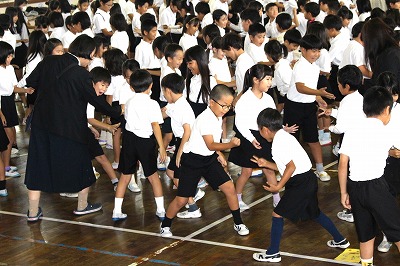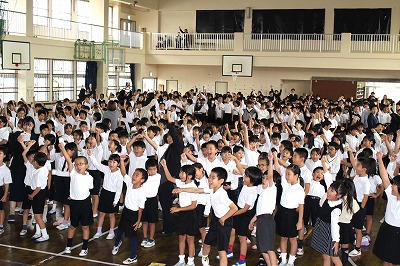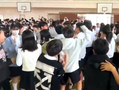校長先生のお話の最後に、みんなで幸せの空気を呼び込む「本気じゃんけん」をして、大いに盛り上がりました~(^^)/
