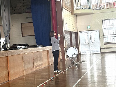 最後に、来年3学期から産休に入る3年3組担任の山下先生の方から離任のごあいさつがありました。元気&かわいい赤ちゃんと、山下先生の復帰をみんなで待ってま~す(^^)/