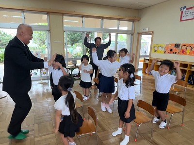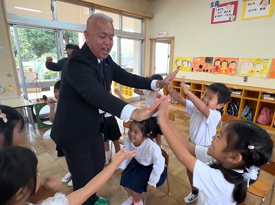 園長先生のお話のあと、おおかわ幼稚園の園児たちとも「本気じゃんけん」をして大いに盛り上がりました~(^^)/