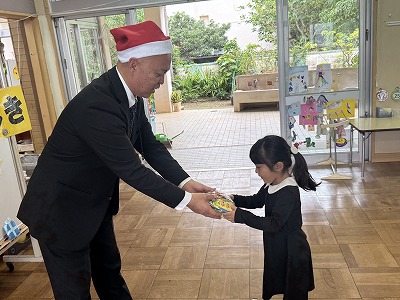 最後に、みんなの成長記録を一人一人に渡した後、今日はクリスマスということで、お菓子のプレゼントを贈りました(^^)/