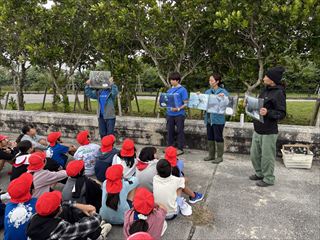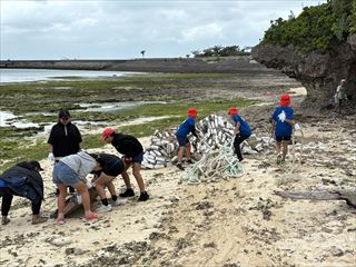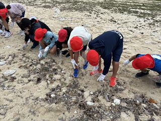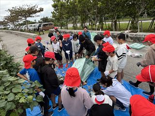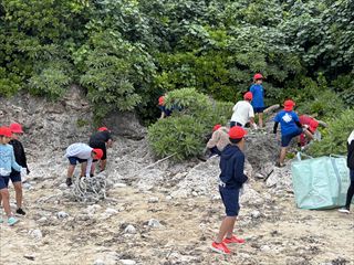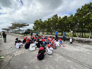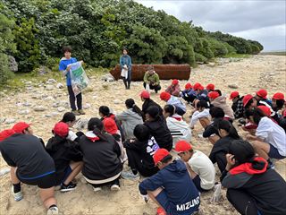 ごみ拾いの後には、「わくわくサンゴ石垣島」さんから、海に捨てられたごみが生き物たちに与える影響についてお話をしていただきました。子どもたちからは、「遠くから見るのと違って、実際に行くとごみがたくさんあることに気づいた」「いろいろな生き物が被害にあっていることが分かった」「またビーチクリーンをしたい」といった感想が聞かれました。