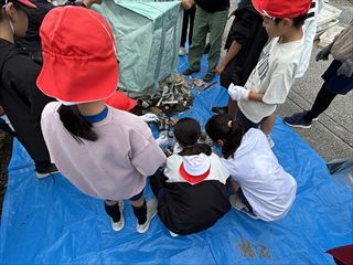 また、6年生は海の恵みにふれる魚捌き体験も行い、命をいただくことへの感謝や、漁業への関心を高める機会となりました。漁師さんたちが舟盛りの刺身を用意してくださり、みんなでおいしくいただきました♪1~4年生も時間を分けて現地を訪れ、先輩たちの活動を見学・応援をしました。
