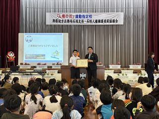石垣市長をはじめ、法務局や人権擁護委員協議会の皆様にご来校いただき、温かく見守っていただく中で式を実施しました。