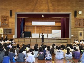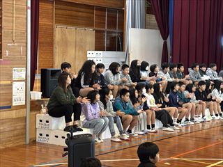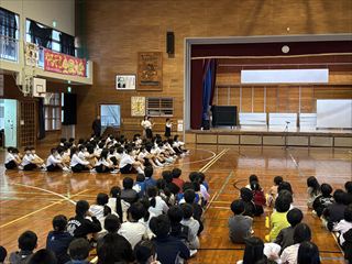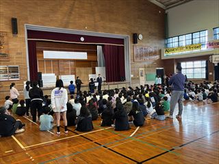 その後、体育館に移動し、全校児童で訓練の振り返りを行いました。子どもたちには、自然災害に遭遇した際に自分の命をしっかりと守れる力をつけてほしいです!