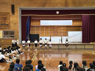 今回は、運営委員会と給食委員会の発表でした。メンバーや活動内容の紹介、八島っ子へのお願いなどがありました。