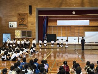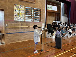 校長先生からは、「中学校では生徒会があります。八島小学校での経験を生かし、みんなが楽しく過ごせる学校づくりのために頑張ってほしい」とのお話がありました。また、「4・5年生の皆さん、次は皆さんが学校のリーダーです。リーダーとして八島小学校を引っ張っていってほしい」と、力強いエールが送られました。