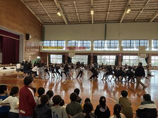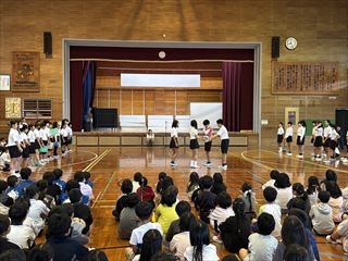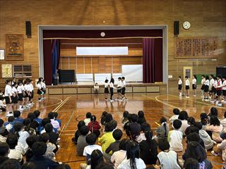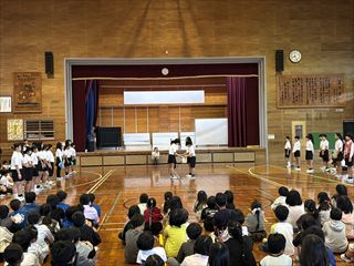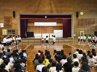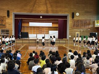最後には、6年生からのお礼としてダンスと組み体操の技が披露され、在校生から大きな拍手が送られました。