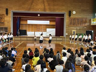 また、認証式後には先日行われました、「第29回春季小学生バレーボール新人大会(女子の部)」で優勝した八島マリンズへ伝達表彰がありました。八島マリンズのみなさんおめでとうご