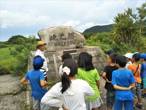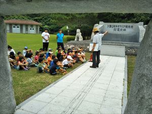 6月は平和月間です。その一環として、平和学習(フィールドワーク)を行いました。講師に「潮平正道さん」を招聘し、学習を深めました。学校でのミニ講話の後、実際に「暁の塔」→「平喜名壕」→「戦争マラリア犠牲者慰霊の碑」へ行って潮平さんの説明を聞き、改めて平和の大切さを感じました。