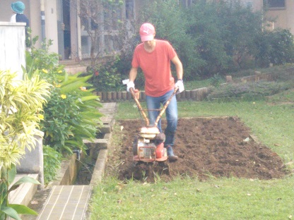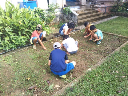 した。今回は、14日に行う運動会に向けて樹木の剪定や草刈、運動場の整備、花壇・教材園の手入れを行いました。