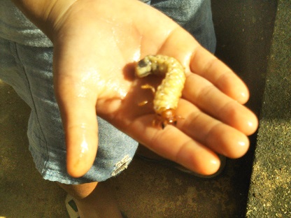 ※作業中、花壇を耕していたら幼虫を発見! 何の幼虫かな?