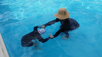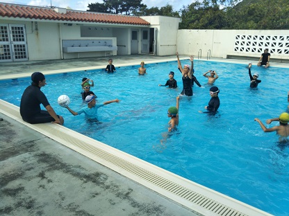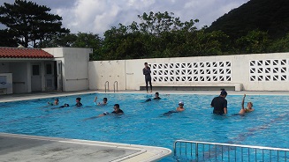 川平小中学校と日程調整をさせていただき行うことができました。天気にも恵まれ、過ごしやすい日差しでプール