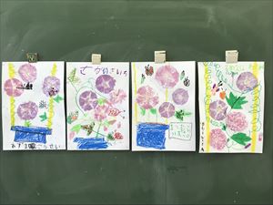 おかげでとてもステキな作品ができました。まるで、画用紙にあさがおが咲いているようですね。
