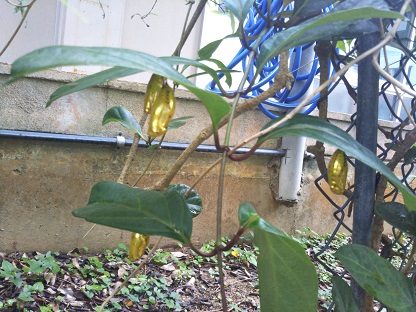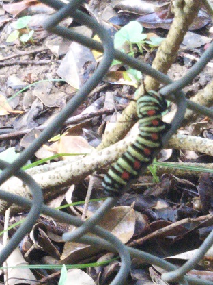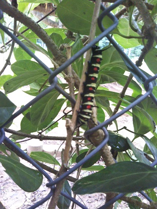 理科室前にオオゴマダラの食草(ホウライカガミ)があります。そのホウライカガミにオオゴマダラの幼虫・サナギが一杯!