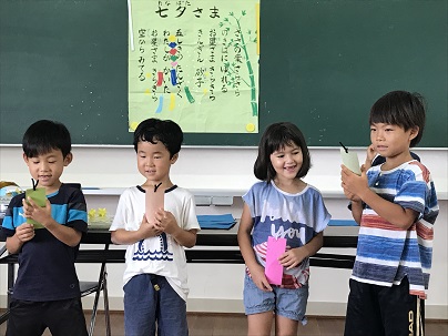 ていて、とても上手に紙芝居を読んでくれました。たなばたクイズも楽しかったです!