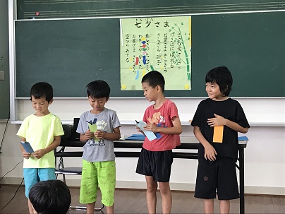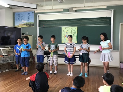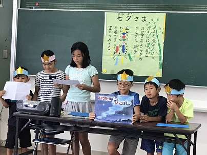 願いごと発表の後は、図書委員さんによる「たなばた」の紙芝居がありました。図書委員さんはしっかり練習し