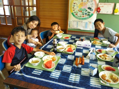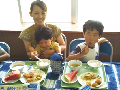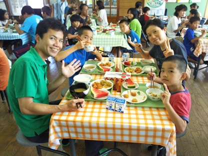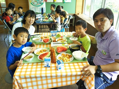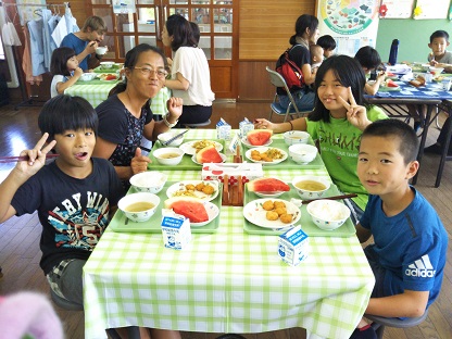 給食をいただきました。お母さんやお父さんと一緒にいただく給食はいつもにも増して楽しくておいしかったですね。