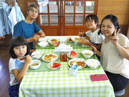 6月21日(木)に親子給食会パートⅡを行いました。6月は7組の親子がそれぞれのテーブルで、和気あいあいと楽しく