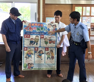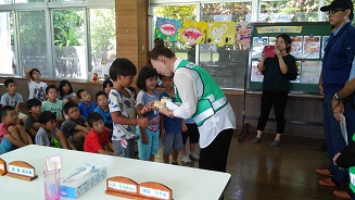 訓練後は、「いかのおすし」のお話や防犯協会の方から1年生へ「いかのおすし」ストラップ贈呈がありました。
