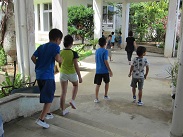 伊原間駐在所の上里さん、白保駐在所の照喜名さんにお越しいただき、不審者対応の避難訓練を行いました。