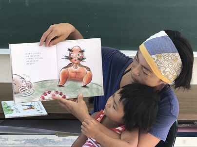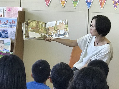 今日2回目の実施です。低学年は酒井さんが「ぐりとぐらとくるりら」「ガマンのケーキ」、高学年は渡邊さんが